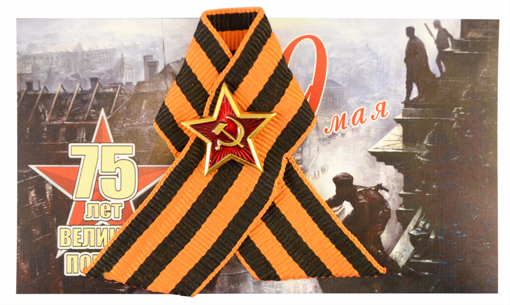 Георгиевска лента со звездой "Серп и молот" на булавке