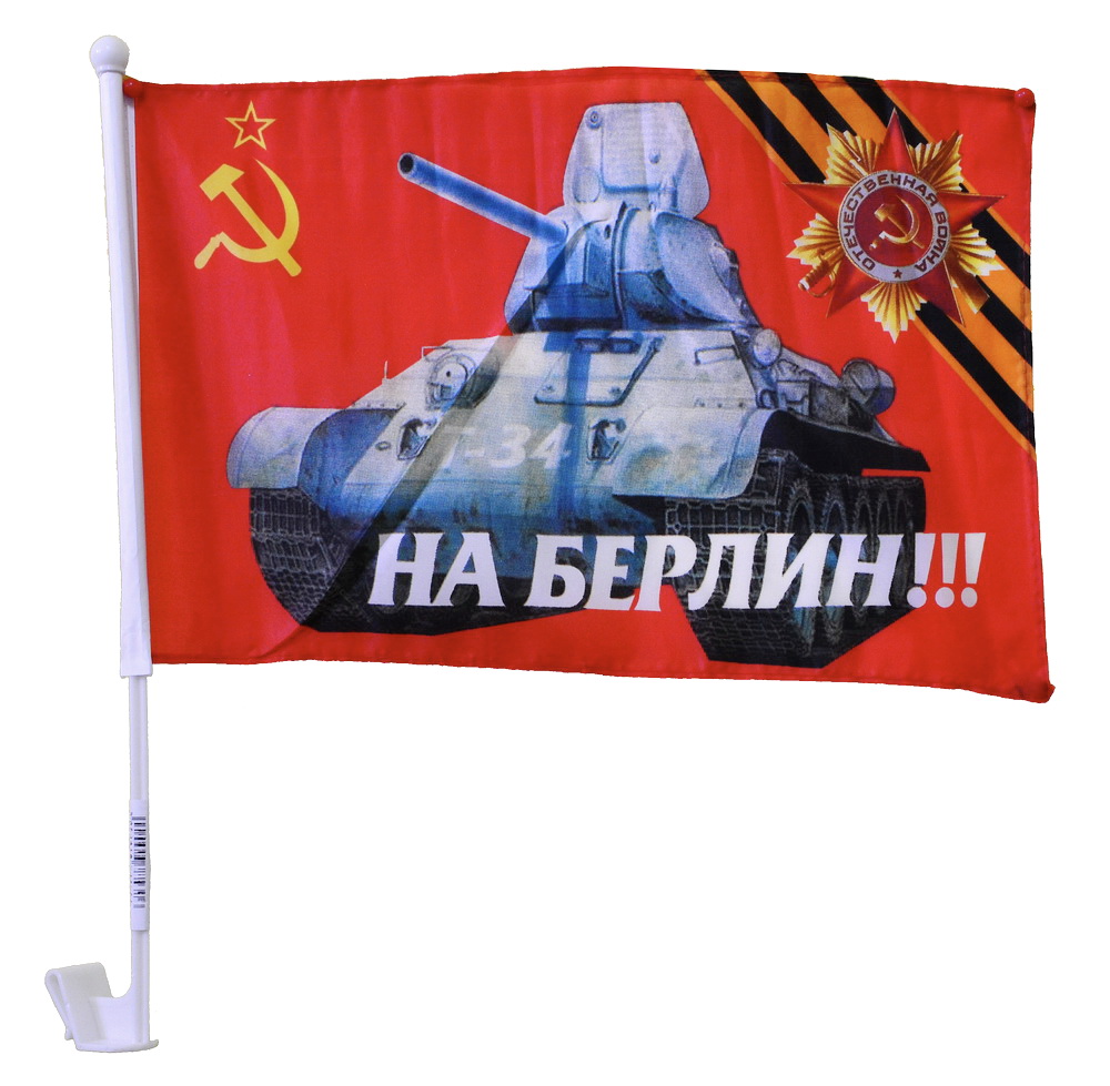 Праздничный флаг ко Дню Победы. У основания древка есть специальный зажим для закрепления на стекле автомобиля. Рисунок защищен от перепадов температуры, влажности и солнечных лучей.