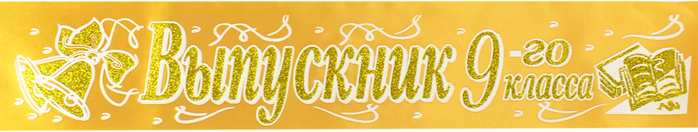 Атласная лента с эффектом 3D "Выпускник 9-го класса" колокольчик, золотая