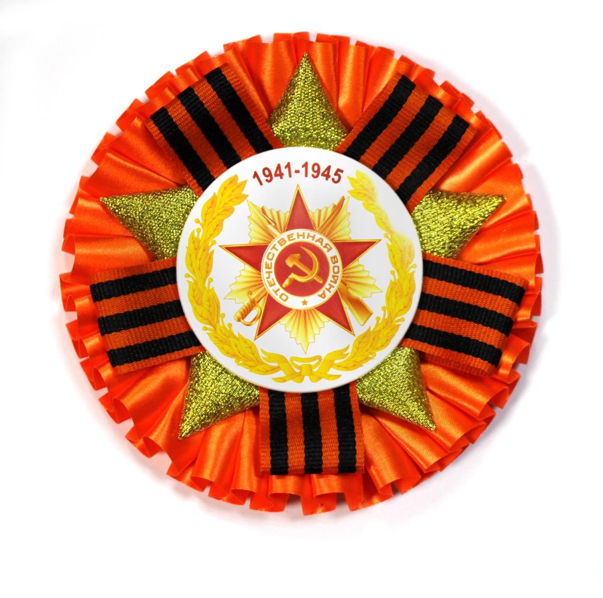 Металлический значок-розетка с ярким рисунком на тему Дня Победы - отличный праздничный аксессуар. На обороте булавка с удобным креплением. Замечательный памятный подарок в День Великой Победы.