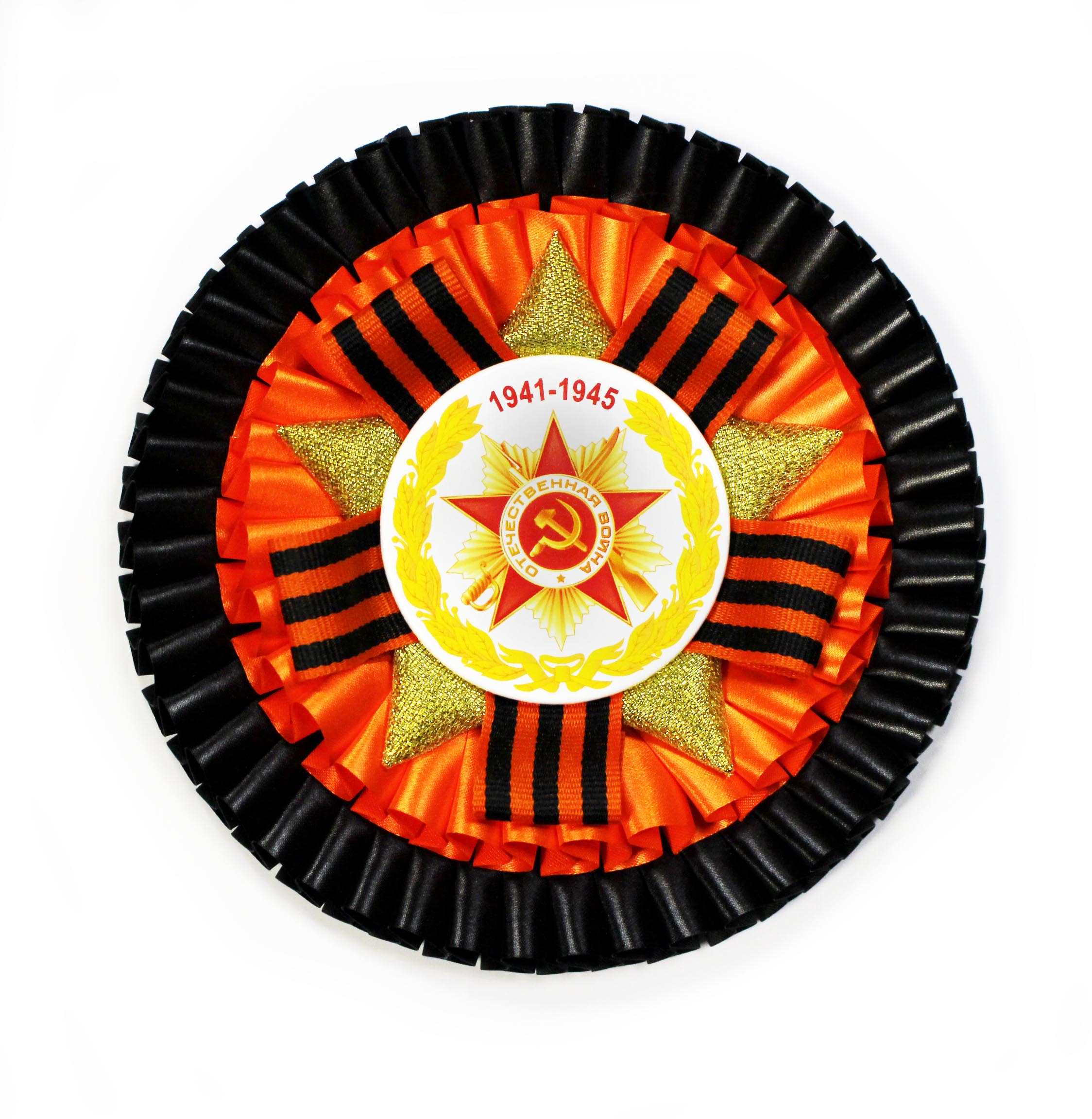 Металлический двухярусный значок-розетка с ярким рисунком на тему Дня Победы - отличный праздничный аксессуар. На обороте булавка с удобным креплением. Замечательный памятный подарок в День Великой Победы.