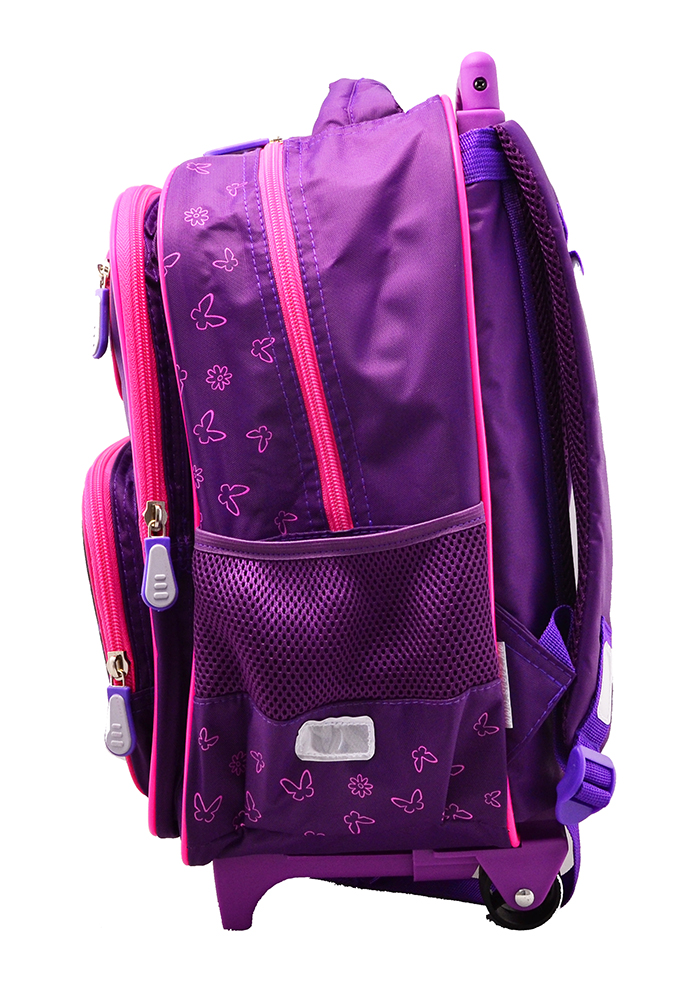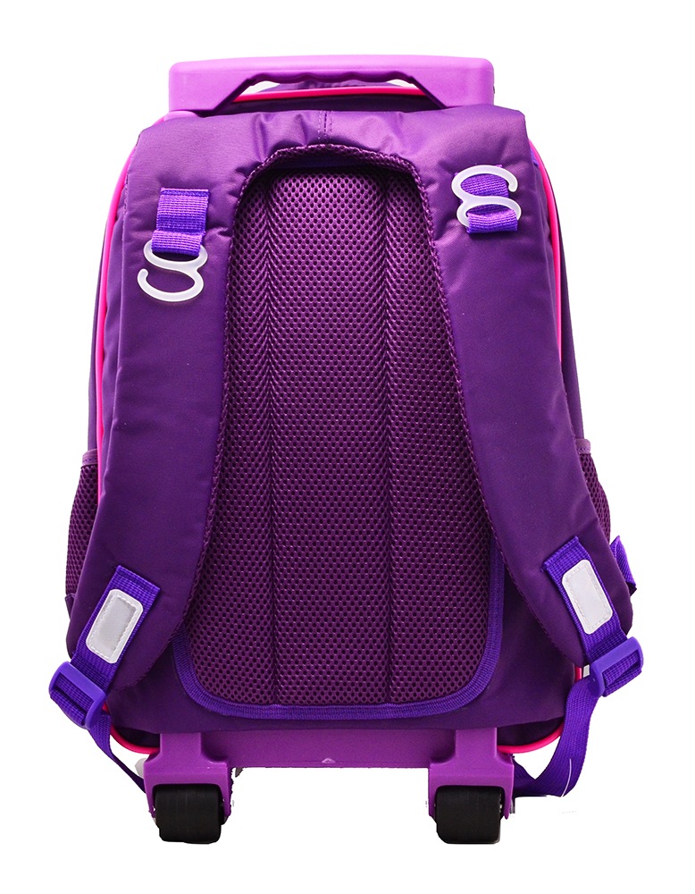 Рюкзак на колесах. Выдвижная ручка+колеса, в данной модели, крепятся к рюкзаку и закрыты ортопедической спинкой. Это позволяет носить рюкзак на спине и катить его как колесную сумку. На лямках имеются специальные крючки, что позволяет крепить регулировочные ремни, таким образом, что при перевозке они не трутся и не пачкаются о землю.