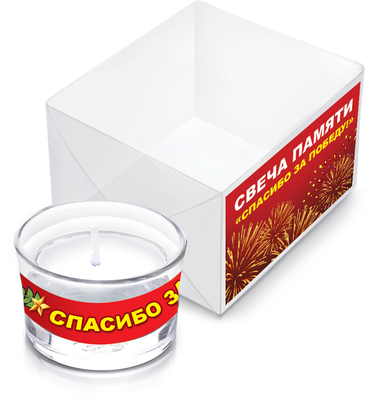 Мы предлагаем вам приобрести красивые свечи в стеклянных подсвечниках, оформленных ко Дню Победы.