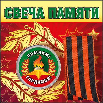 Свеча памяти с георгиевской лентой "Вечная слава героям войны! Помним! Гордимся!"