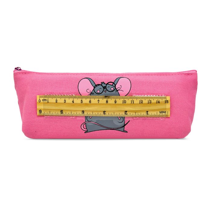 Пенал-косметичка 20*8*3,5 см "Мышка с линейкой" ткань, розовый