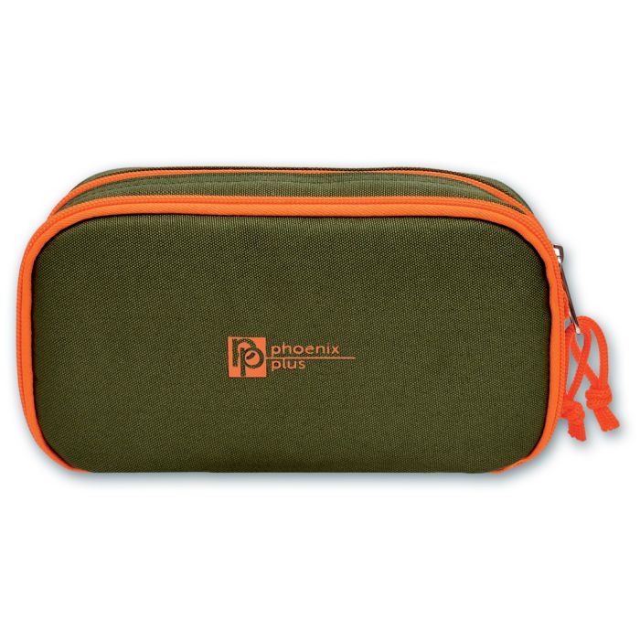 Пенал на молнии, 2 отделения, 210*110*65 мм, зеленый, с двумя внутренними карманами