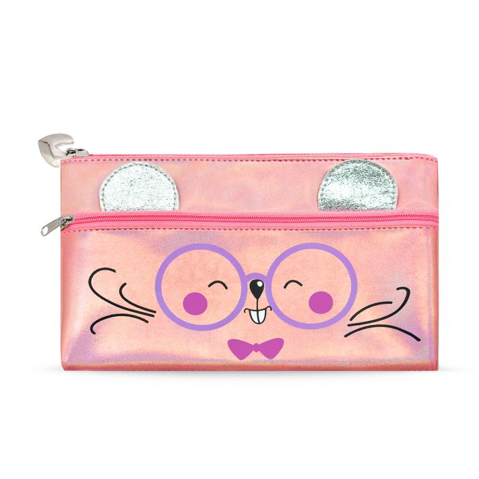 Пенал 2 отделения 23*14 см "Мышка в очках" металлизированная искусственная кожа