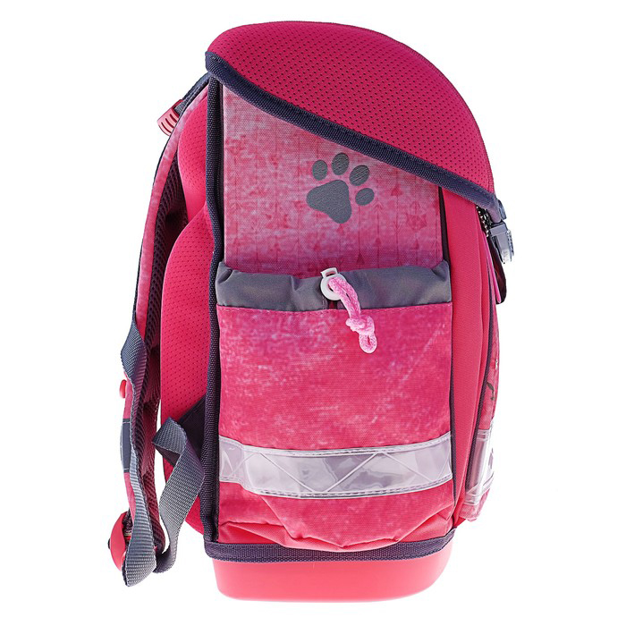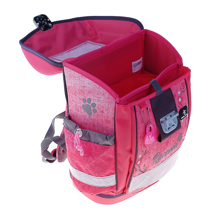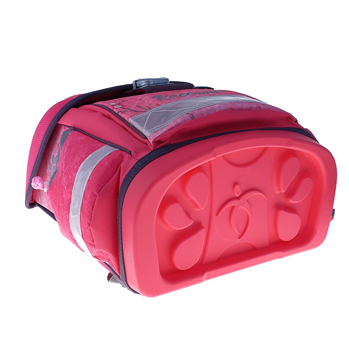 - Имеет две ручки: одну для удержания ранца в руке и переноски, усиленную пластиковым каркасом и вторую для подвешивания ранца за партой.