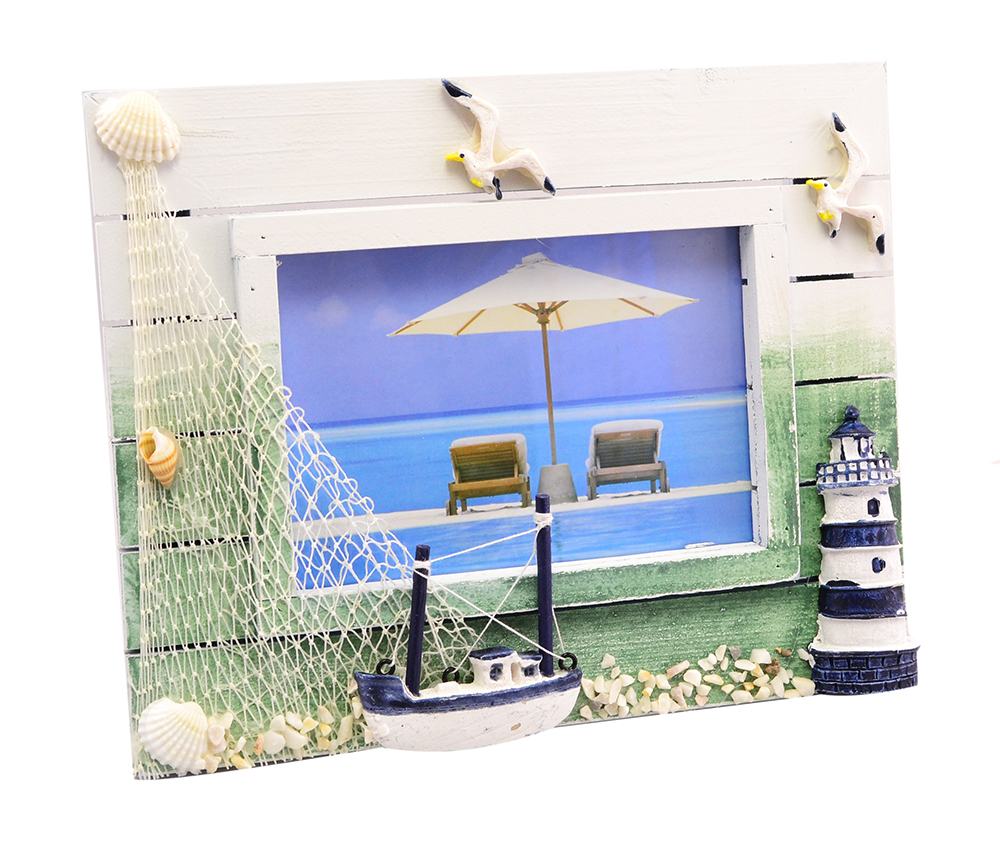 Уникальная и оригинальная фоторамка морской тематики - замечательный подарок для Вас и Ваших близких! Такая рамка добавит яркий акцент в Ваш интерьер дома. Фоторамка выполнена из дерева и керамики, с настоящими ракушками.