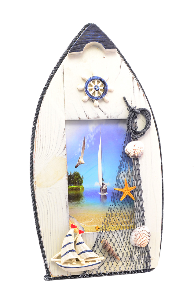 Уникальная и оригинальная фоторамка морской тематики - замечательный подарок для Вас и Ваших близких! Такая рамка добавит яркий акцент в Ваш интерьер дома. Фоторамка выполнена из дерева и керамики, с настоящими ракушками.