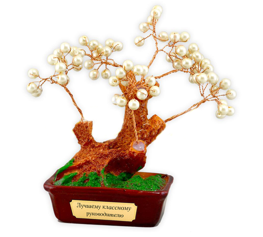 Статуэтка-сувенир выполнена в виде дерева бонсай, у которого вместо листиков - жемчужины. Это дерево станет отличным подарком для педагогов, родных и близких и коллег.