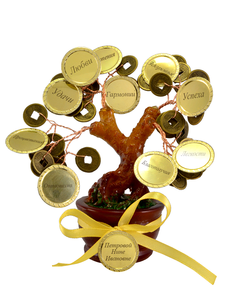 Дерево выполнено из медных монеток. Основание из дерева, покрытое нетоксичным лаком.