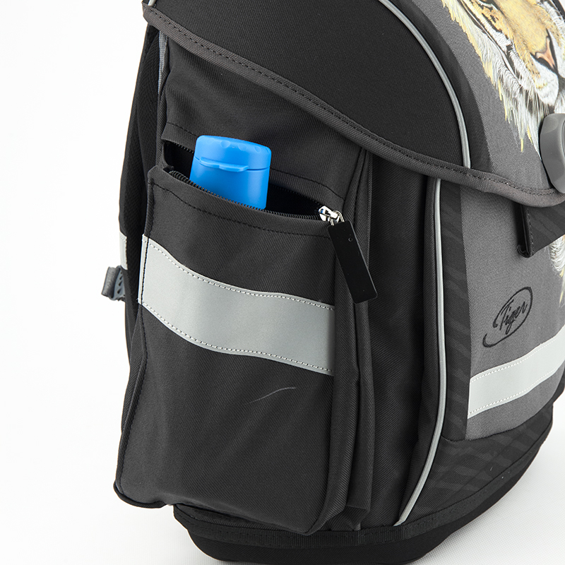 Светоотражающие элементы со всех сторон рюкзака обеспечивают видимость ребенка на дороге в темное время суток.