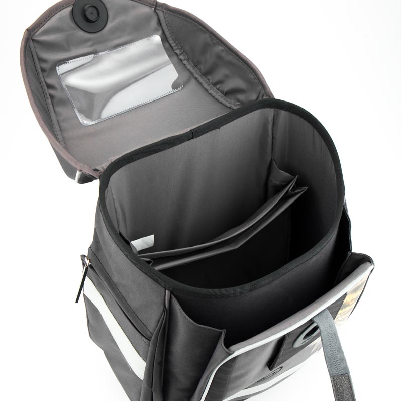 Внутренние разделители для книг и тетрадей помогают школьнику правильно организовать пространство в рюкзаке. На внутренней стороне крышки рюкзака есть специальное место для расписания.