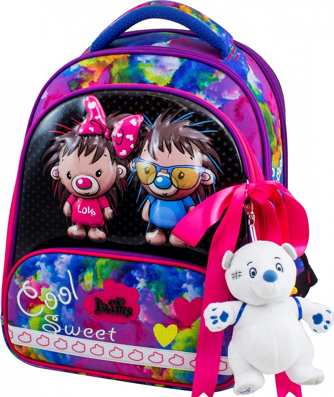 Ранец школьный с ортопедической спиной De Lune + мешок + жесткий пенал + мишка + ленточка