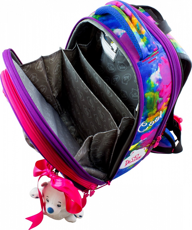 - Внутреннее оснащение ранца разработано по специальной системе распределения вещей «Open access», что позволяет удобно распределить школьные принадлежности ребенка.