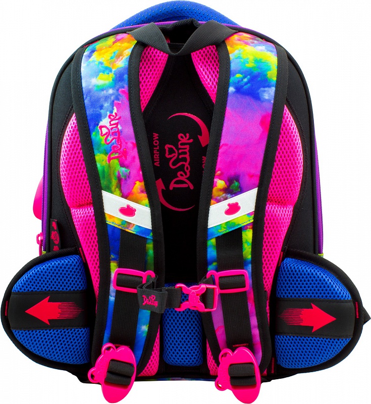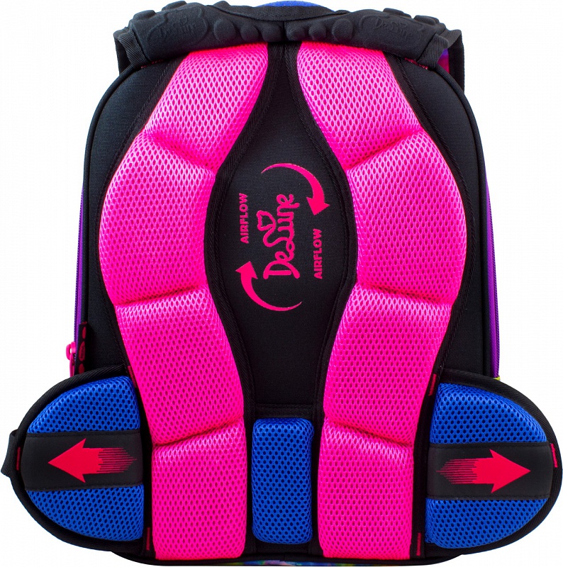 Эргономичная спинка ранца, разработана по новым технологиям, которые учитывают все особенности анатомии ребенка. Позвоночник защищен специально сконструированной спинкой с саморегулируемой боковой поддержкой, которая при ходьбе не позволяет смещаться ранцу в стороны, надежно фиксируя на пояснице, и подходит ребенку любой комплекции. Надежная фиксация делает ношение максимально удобным.