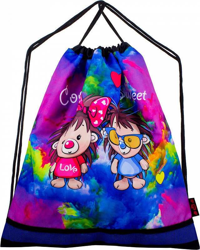 - Мешок для сменной обуви, декорированный под ранец, с сеточкой для циркуляции воздуха.