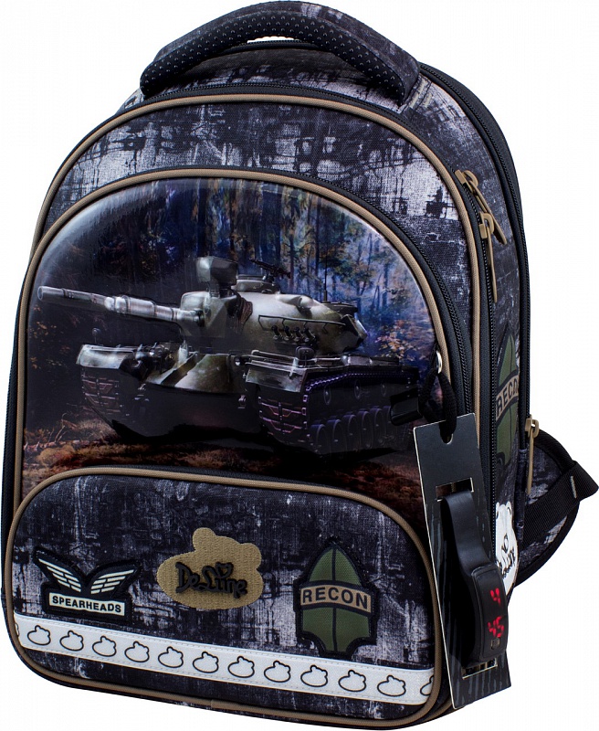 - Фирменные, пластиковые, продолговатые ножки, обеспечивают устойчивость ранца.