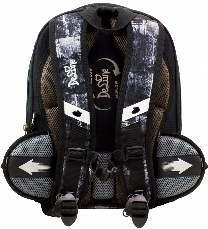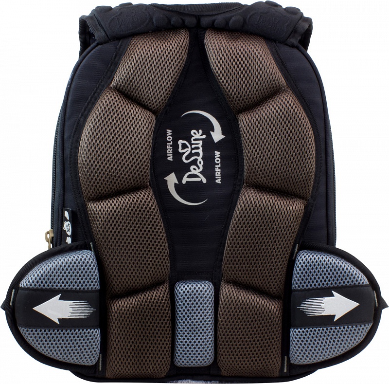 Эргономичная спинка ранца, разработана по новым технологиям, которые учитывают все особенности анатомии ребенка. Позвоночник защищен специально сконструированной спинкой с саморегулируемой боковой поддержкой, которая при ходьбе не позволяет смещаться ранцу в стороны, надежно фиксируя на пояснице, и подходит ребенку любой комплекции. Надежная фиксация делает ношение максимально удобным.
