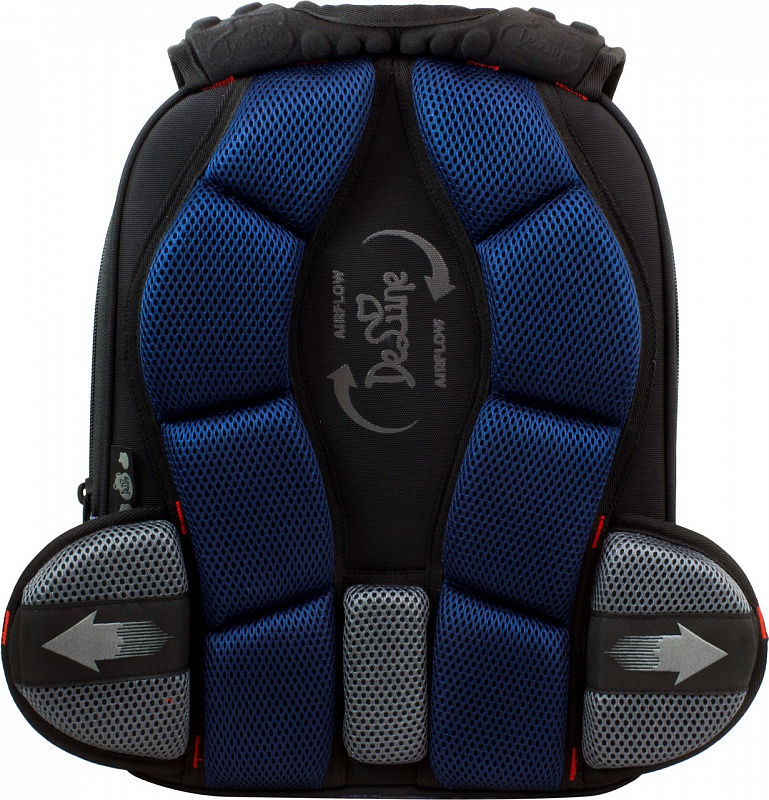 Эргономичная спинка ранца, разработана по новым технологиям, которые учитывают все особенности анатомии ребенка. Позвоночник защищен специально сконструированной спинкой с саморегулируемой боковой поддержкой, которая при ходьбе не позволяет смещаться ранцу в стороны, надежно фиксируя на пояснице, и подходит ребенку любой комплекции. Надежная фиксация делает ношение максимально удобным.