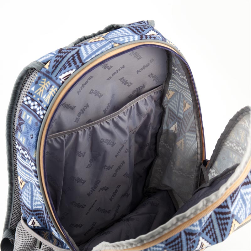 Рюкзак состоит из 2 отделений, переднего, внутреннего и 2 боковых карманов, куда легко помещается бутылка для воды. Передний карман оснащен органайзером, что позволяет систематизировать и находить мелкие вещи в рюкзаке. Регулируемые лямки и небольшой вес, всего 640 г, делают изделие необременительным для пользователя. Имеет мягкую уплотненную ручку, соединенную с лямками.