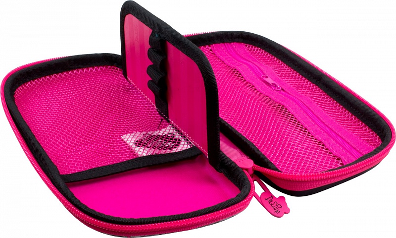 Пенал имеет одно большое отделение, разделенное перегородкой, на которой удобно можно разместить все ручки и карандаши, так же имеется удобное отделение-сеточка на молнии.