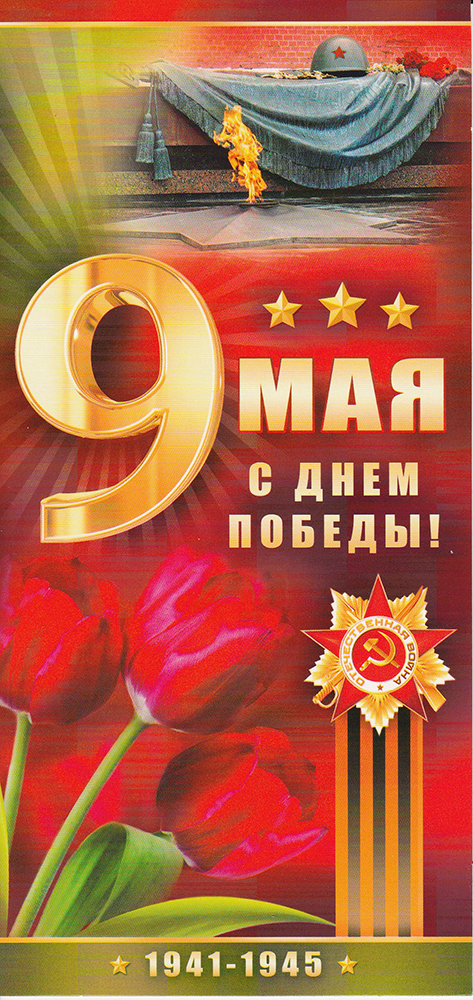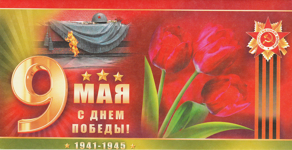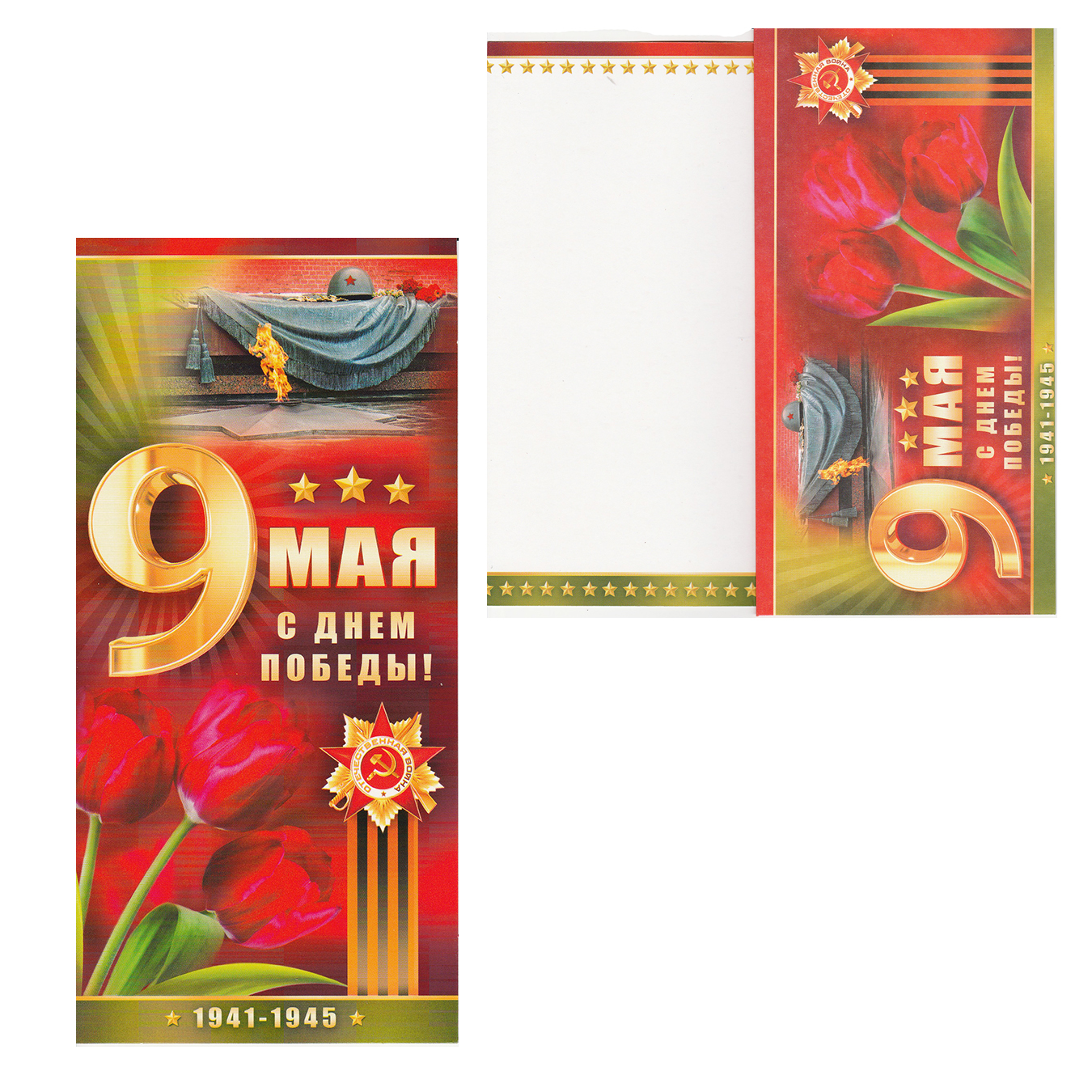 Красочная открытка с конвертом. Практичный подарок к празднику 9 мая, так как сочетает в себе открытку и конверт для денег или письма.