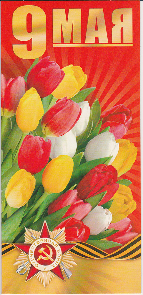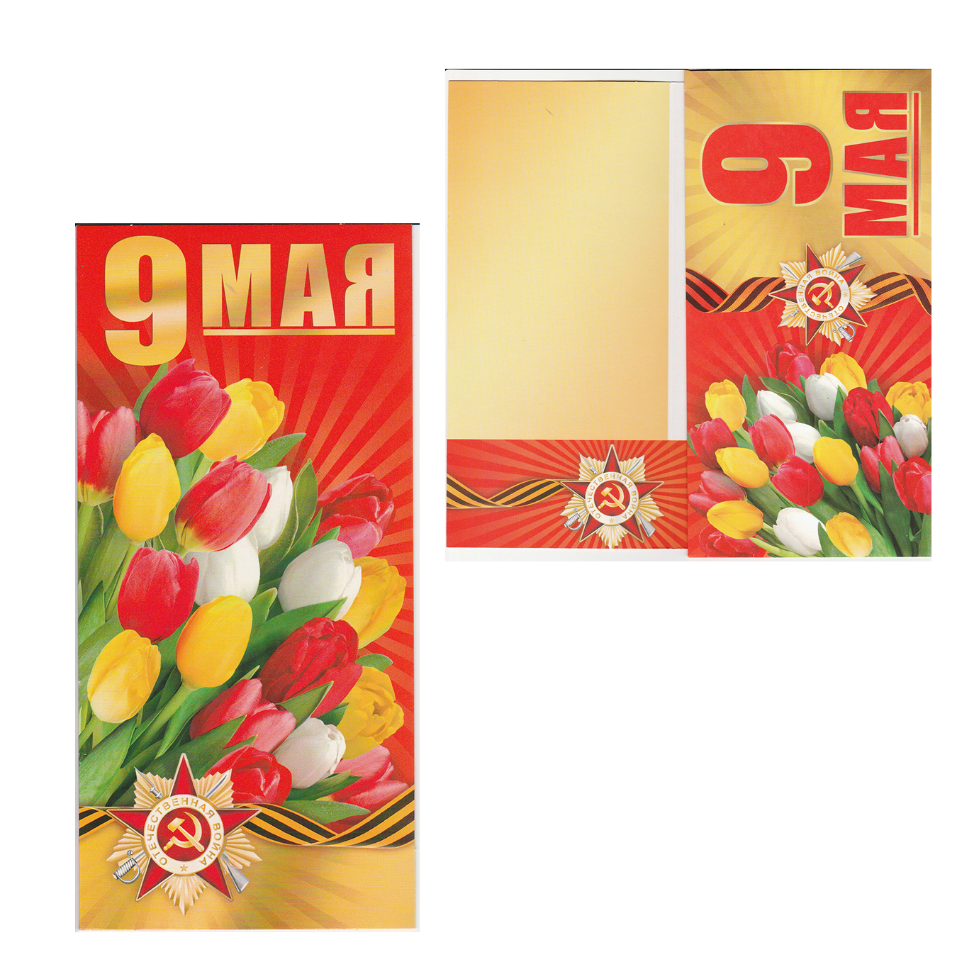 Красочная открытка с конвертом. Практичный подарок к празднику 9 мая, так как сочетает в себе открытку и конверт для денег или письма.