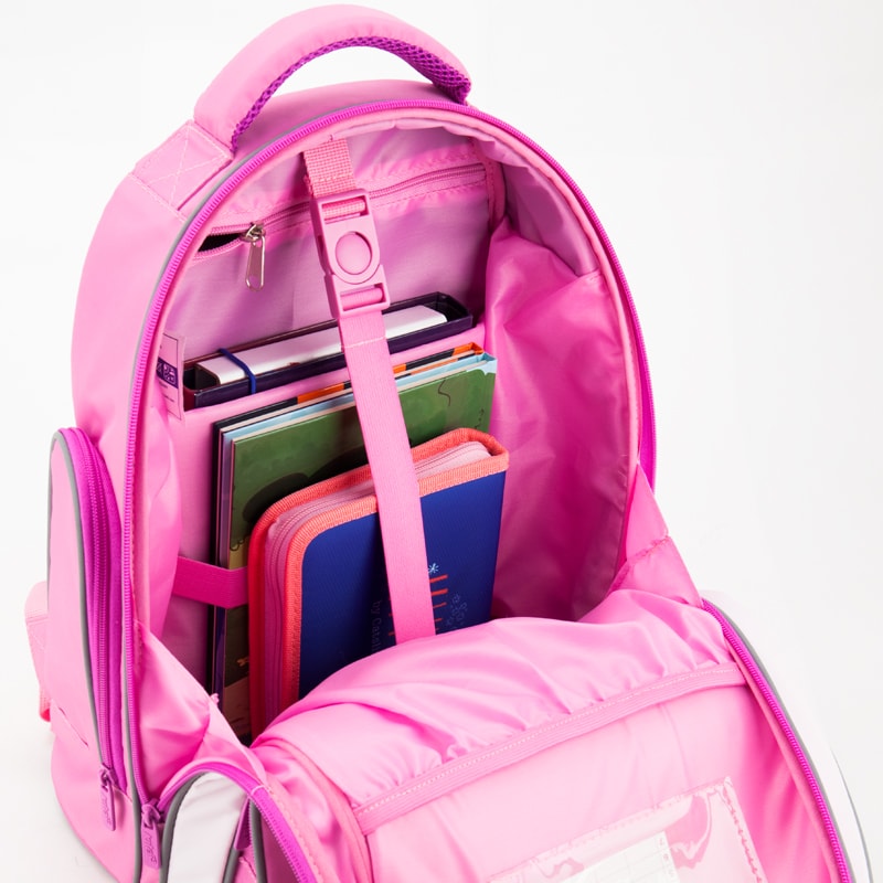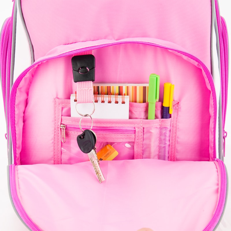 - Передний карман оснащен удобным органайзером из цветной ткани, что позволяет систематизировать и легко находить в рюкзаке школьные принадлежности и личные вещи ребенка.