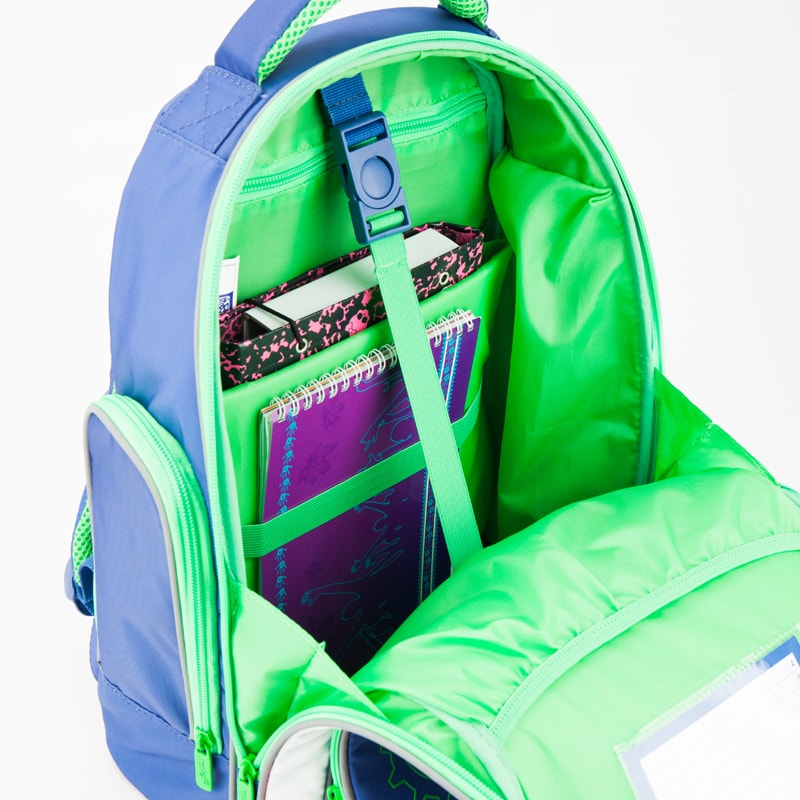 - Передний карман оснащен удобным органайзером из цветной ткани, что позволяет систематизировать и легко находить в рюкзаке школьные принадлежности и личные вещи ребенка.