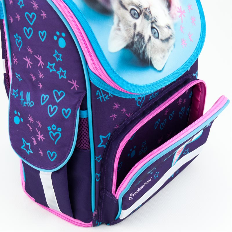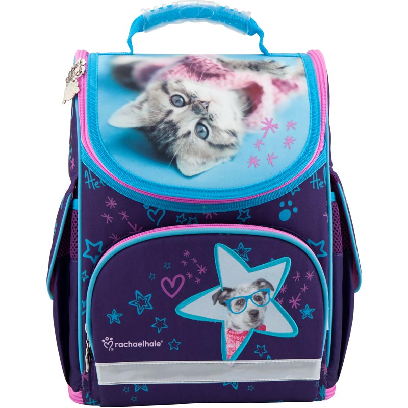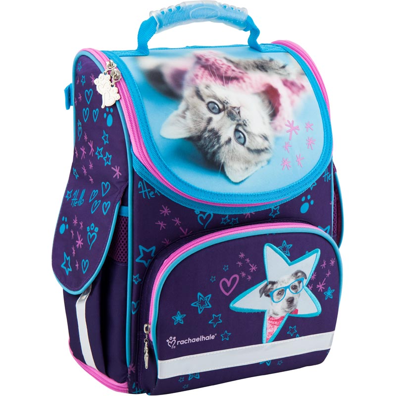 Каркасный рюкзак Kite R18-500S для девочек младшей школы выполнен из прочного полиэстера голубого и фиолетового цветов с лицензионным изображением фотографии известной фотохудожницы Рейчел Хейл. Ортопедическая спинка Ergo Kids с "дышащими" подушечками, анатомические лямки правильной S-образной формы, нагрудный ремень способствуют плотному прилеганию рюкзака к спине, минимизируют давление на плечи и позвоночник ребенка, дарят ощущение комфорта и легкости. Регулируемые лямки и небольшой вес, всего 920 г, делают рюкзак комфортным и необременительным для ребенка.