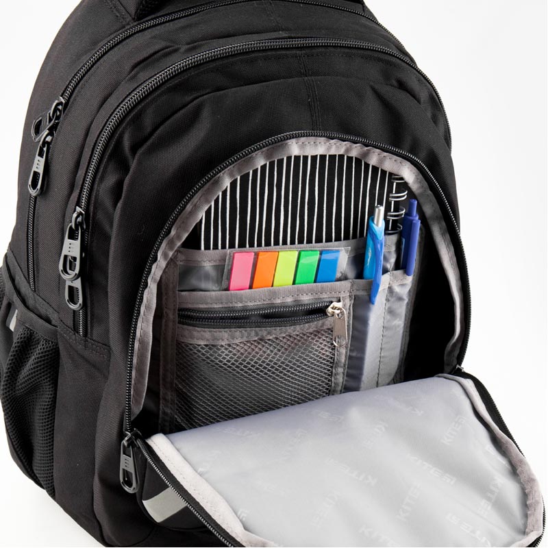 Вместительный школьный рюкзак Kite Be Sound K19-8001M-6 имеет 2 просторных отделения, куда можно сложить и школьные принадлежности, и спортивные вещи, и все необходимое в течение дня. Удобная спинка и лямки позволяют с комфортом носить даже заполненный рюкзак. Лаконичный черный дизайн украшает драйвовый рок-н-рольный принт из серии Be Sound.