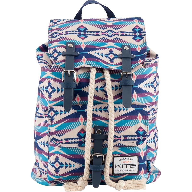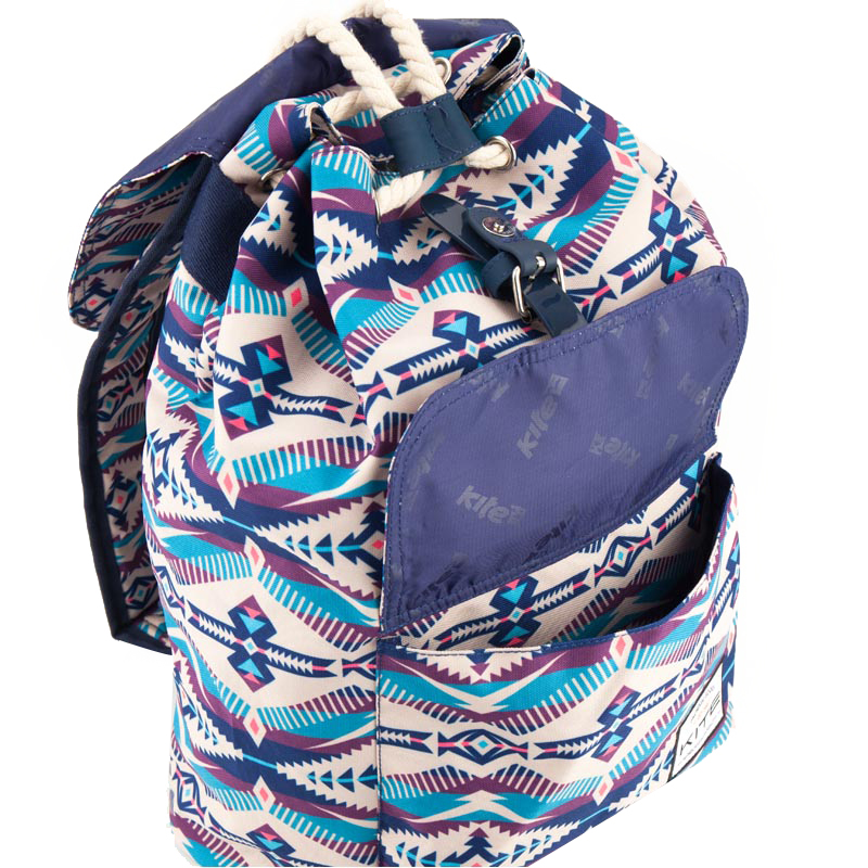 Рюкзак Kite K18-863M предназначен для подростков, студентов и ярких личностей, которые любят качественные и удобные аксессуары. Изделие выполнено из полиэстера с ярким геометрическим принтом на бежевом фоне. Имеет синюю фирменную подкладку.