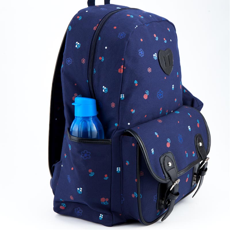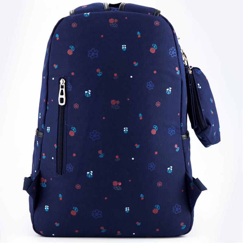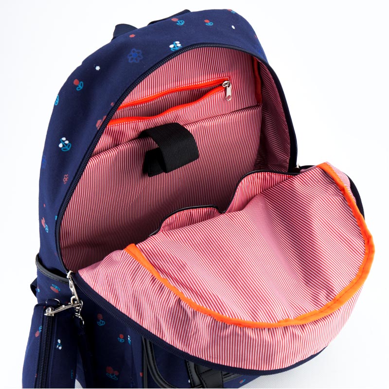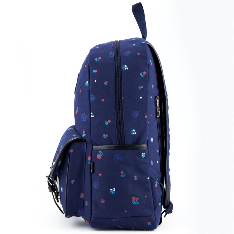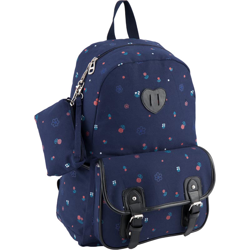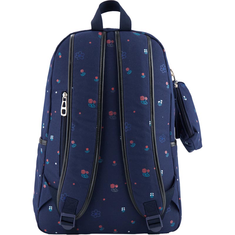 Рюкзак Kite K18-897L предназначен для подростков, студентов и ярких личностей, которые любят качественные и удобные аксессуары. Изделие выполнено из брезента синего цвета с мелким цветочным принтом. Имеет полосатую подкладку. В подарок к рюкзаку пристегнута на карабин компактная косметичка.