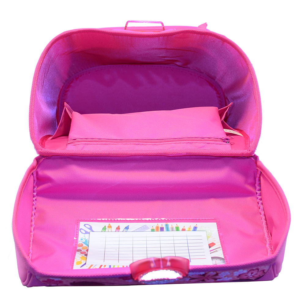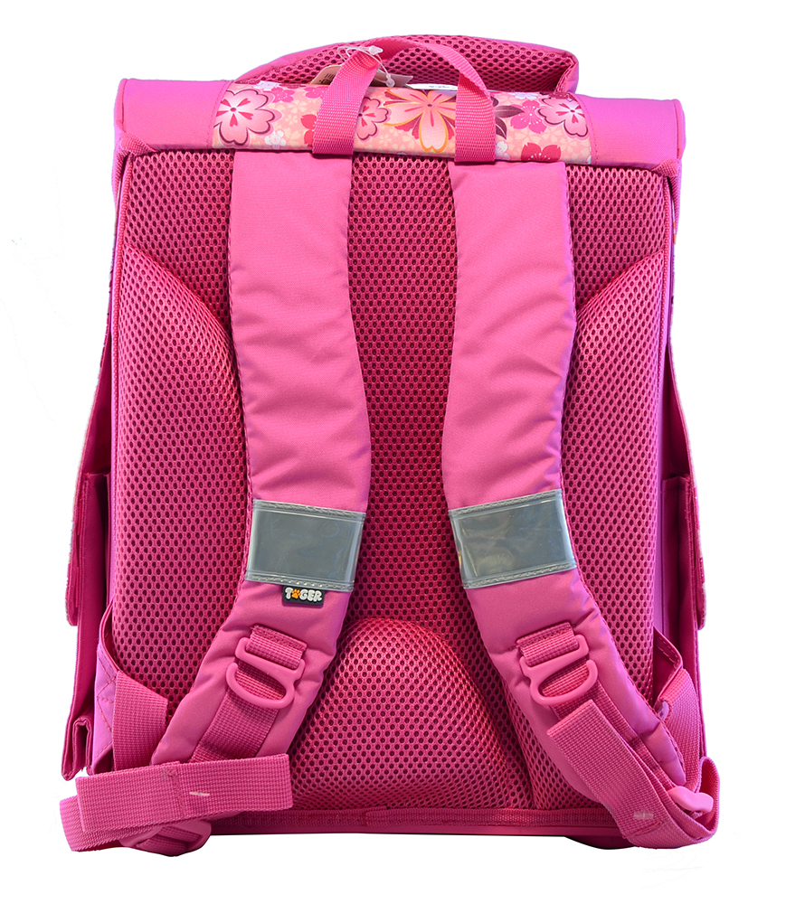 Светоотражающие элементы с четырех сторон делают школьницу более заметной на дороге даже в темное время суток. Устойчивое дно из облегченного пластика защищает учебники и тетради от намокания. Удобная застежка открывается и закрывается одним движением. Качественный водоотталкивающий материал не позволяет грязи въедаться, поэтому ранец легко чистить влажной тряпочкой. Розовые блестки и нежный цветочный рисунок идеально сочетаются со школьной формой.