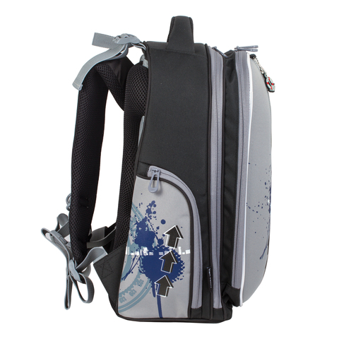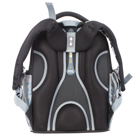 Анатомически правильная спинка легко регулируется по росту ребенка. Прочный материал и нескользящее дно позволяют ранцу выстоять все испытания активной школьной жизни. Съемный нагрудный ремешок уменьшает нагрузку на спину.