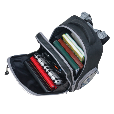 Светоотражающие элементы с четырех сторон делают школьника более заметным на дороге даже в темное время суток. Устойчивое дно из прорезиненного материала защищает учебники и тетради от намокания.