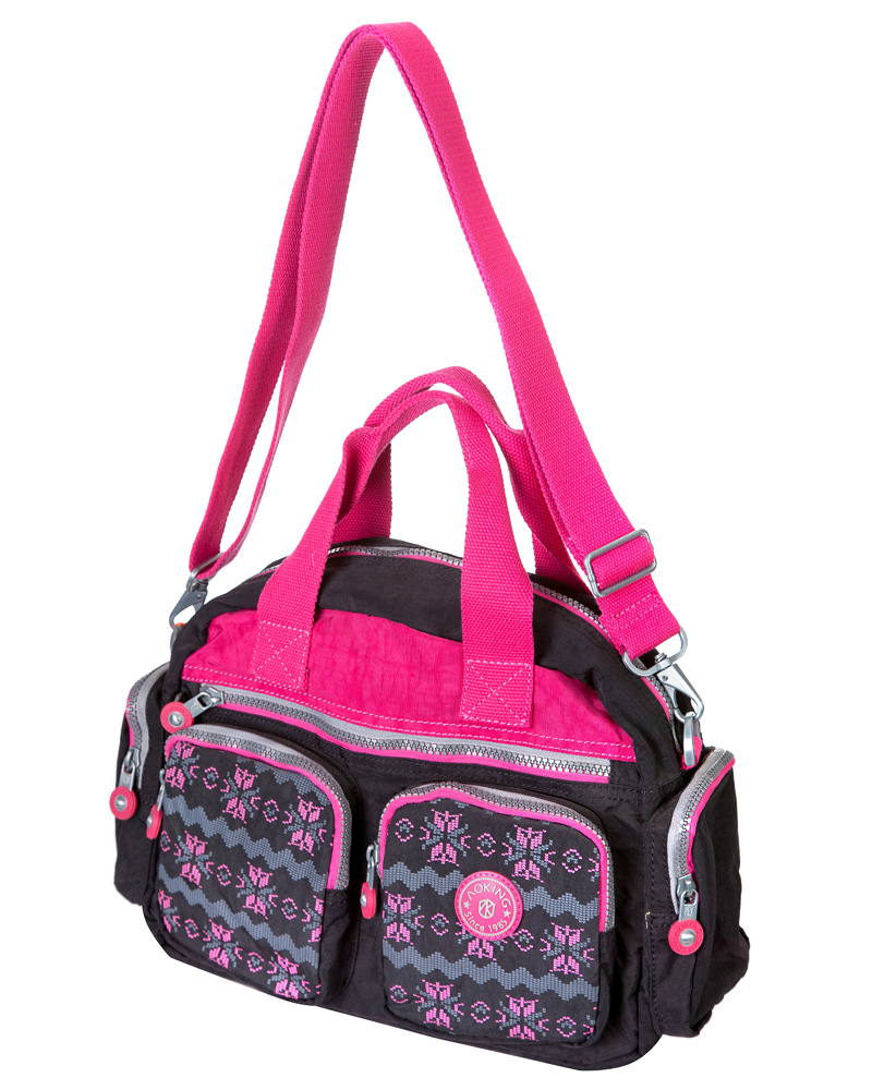 - Мягкий регулируемы ремешок из ткани через плечо, с карабинами для снятия