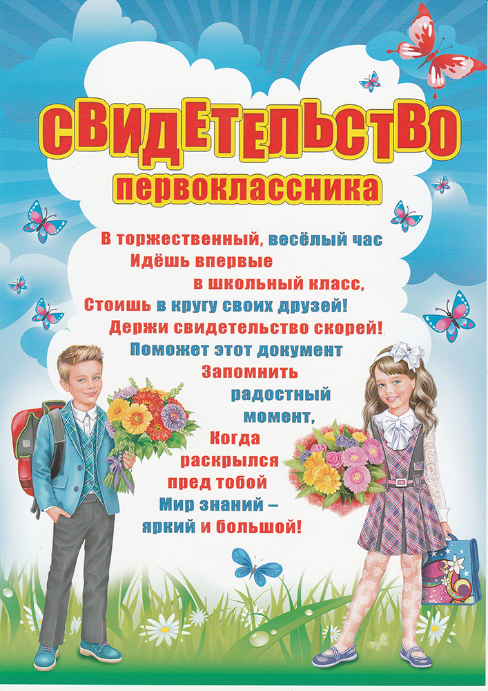 Свидетельство А4 первоклассника, 20 штук в упаковке, бумага 086.254