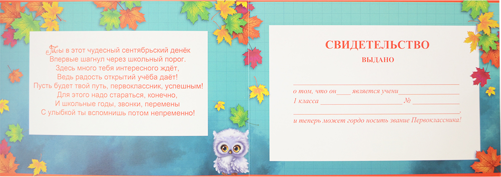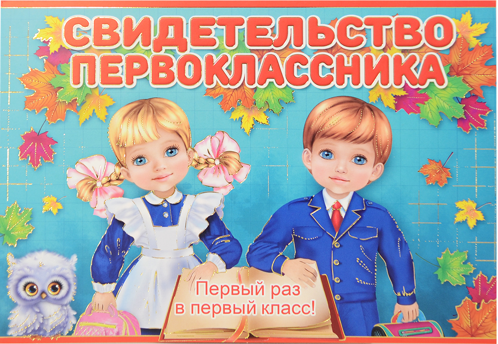 Свидетельство первоклассника имеет картонную, полноцветную, обложку.