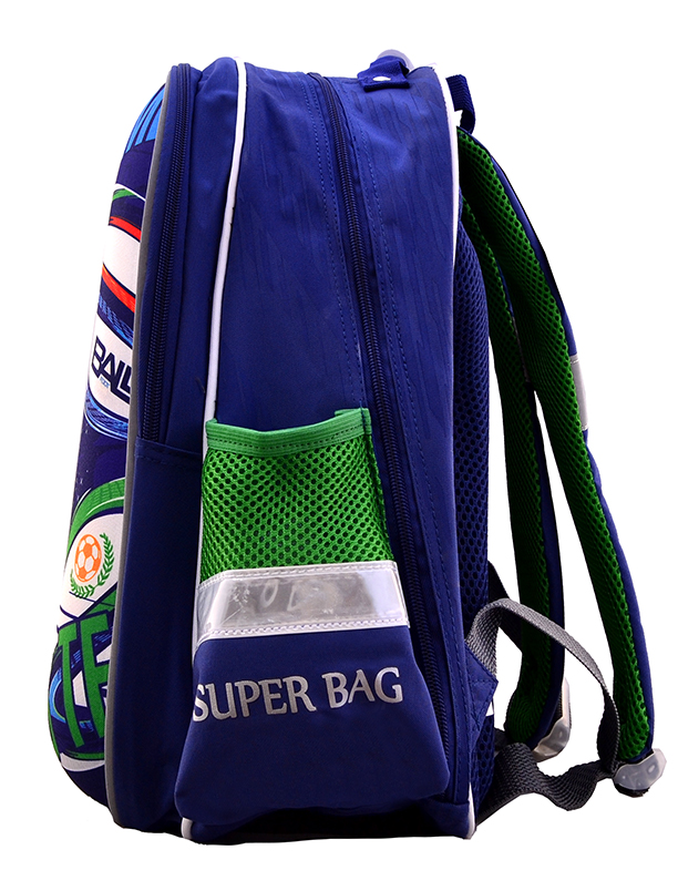 Стильный ранец Super bag Футбол вместительный и в тоже время невероятно легкий и удобный ранец, послужит отличным помошников в учебе для маленького школьника. Внутри ранца находятся три больших отделения, снаружи два боковых кармана- сеточки, а дно оснащено устойчивыми ножками, защищающими от воды и грязи. Красочный передний клапан выполнен EVA-материала, который обеспечивает долговечность и износоустйчивость ранца. Модель ранца Super bag Футбол соответствует всем необходимым для здоровья и безопасности ребенка требованиям, а именно расположенными на лямках и передней части ранца светоотражающими элементами, широкими регулируемыми лямками, а также эргономичной спинкой, повторяющей естественный изгиб позвоночника.