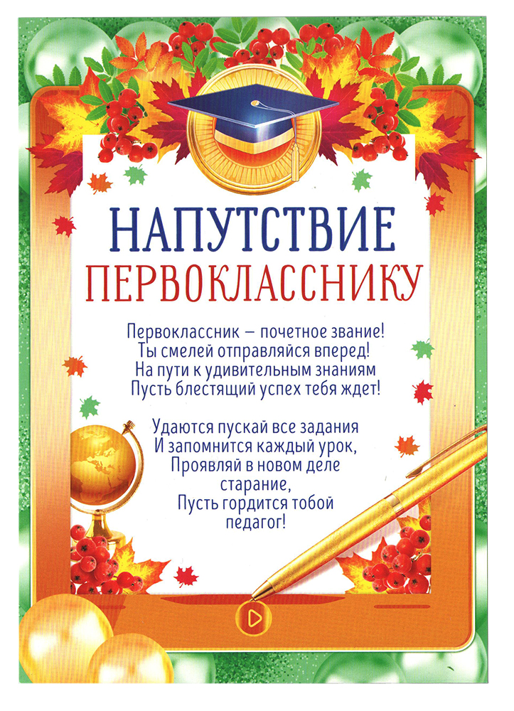 Напутствие первокласснику А5, 10 штук, картон 85.258