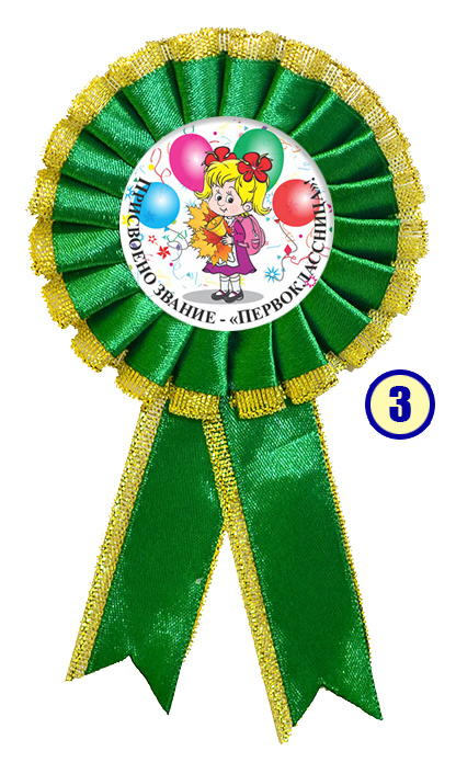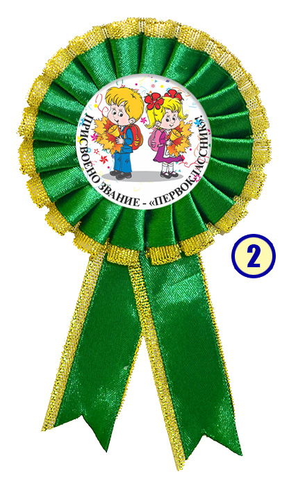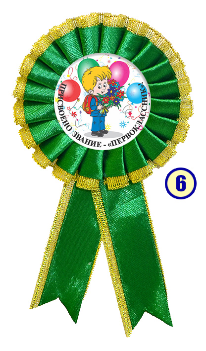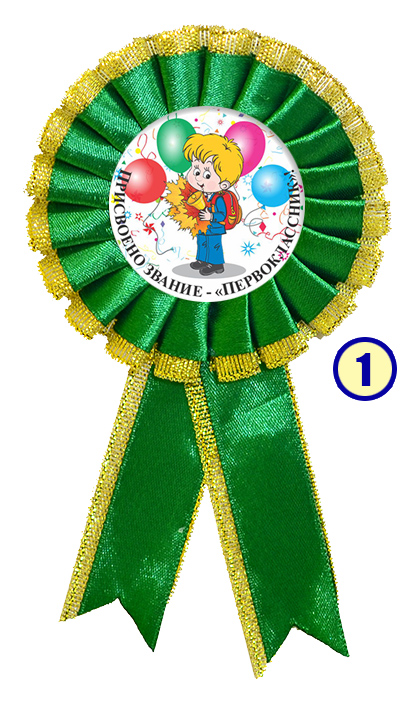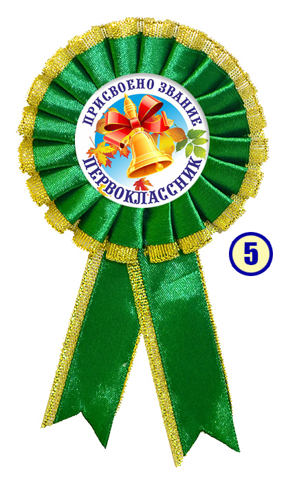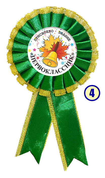 Значок-розетка из атласной ленты *Присвоено звание - Первоклассник*