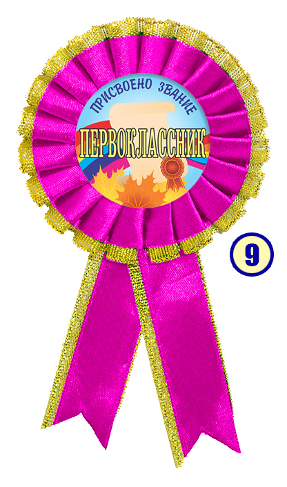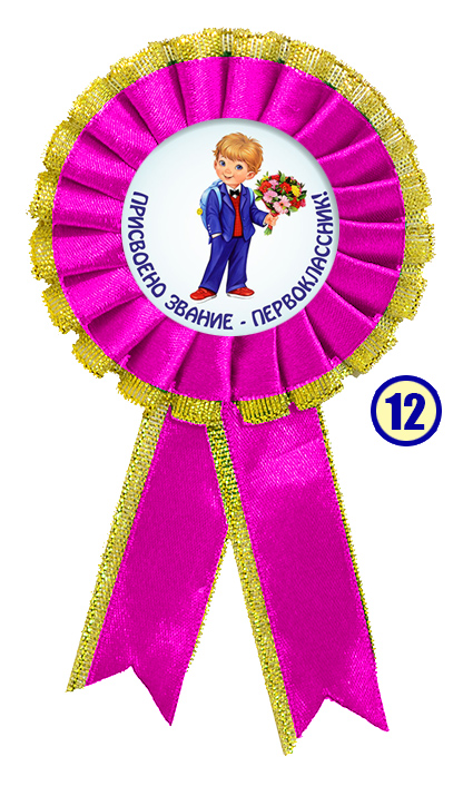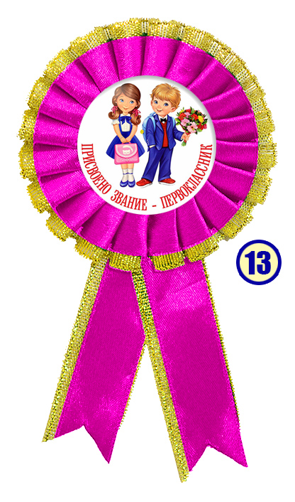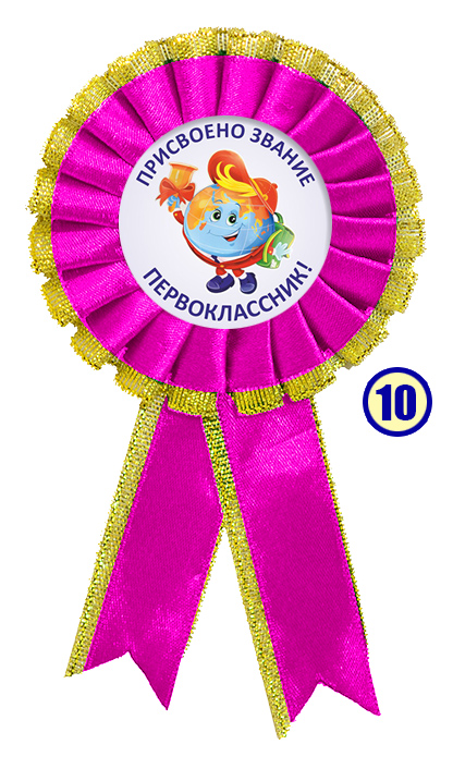 Значок-розетка из атласной ленты *Присвоено звание - Первоклассник*