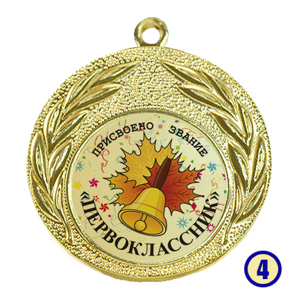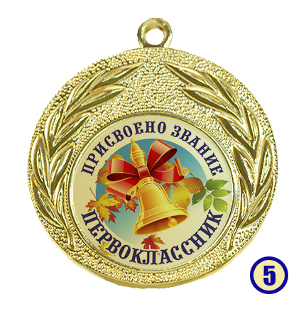 Медаль *Присвоено звание - ПЕРВОКЛАССНИК* изготовлена из металла с золотым напылением, в центре цветная гравировка с замечательным мальчиком.