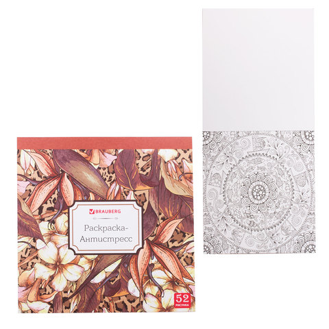 Раскраска-Антистресс BRAUBERG 52 рисунка + 52 страниц для рисования, 52 листа, ассорти