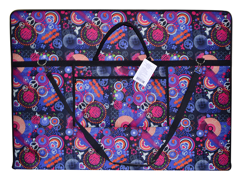 Папка с твердыми стенками на молнии. Есть ручка для переноски и лямка с мягкой накладкой.