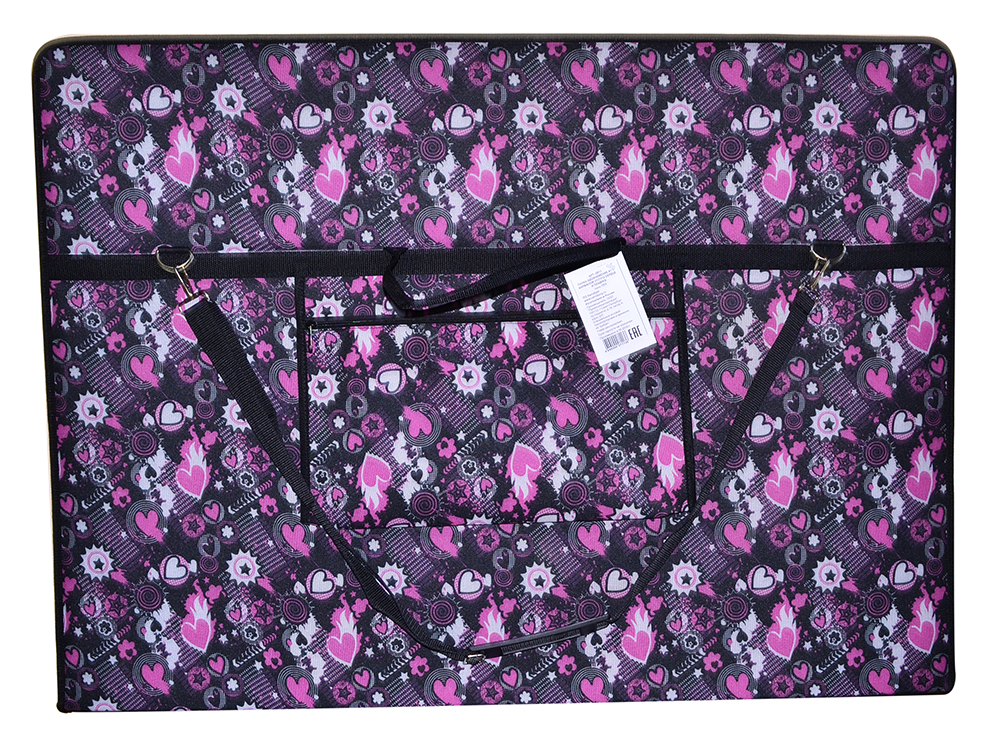 Папка с твердыми стенками на молнии. Есть ручка для переноски и лямка с мягкой накладкой.