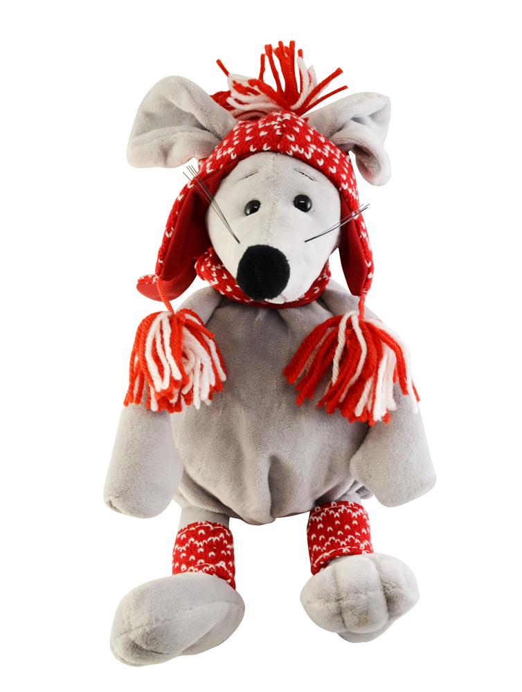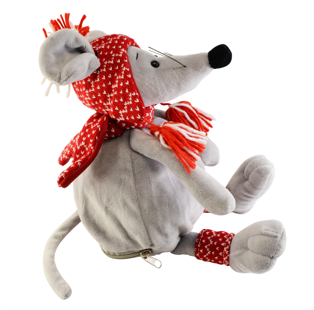 Мягкая игрушка в виде мышки в шапке с шарфом с отделением на замке-молнии.